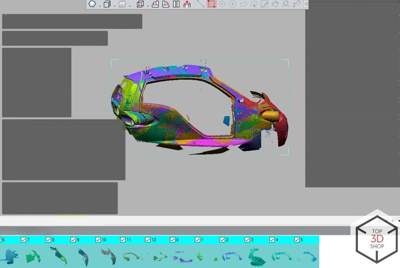 We started with the side surface of the car, since it is the largest continuous area (picture 1). This first scan let us spot and solve issues early.