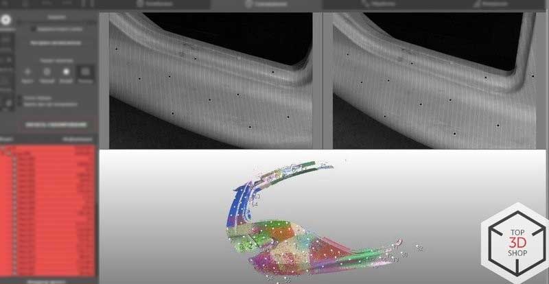 We covered reflective and glossy surfaces to prevent glare. Uncontrolled reflections cause scan defects like holes and black spots in the data. See the example below.