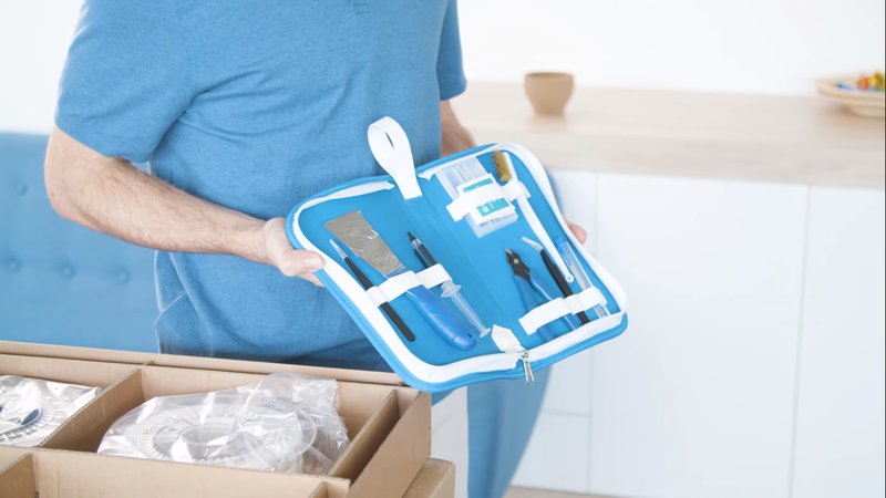 Inside the cleaning kit, you will find such accessories as nippers, a scraper, brush, and other useful items.