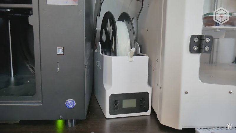 You can also refrain from dedicated drying equipment and dry the spool right in the printer’s chamber on the heated bed. Just place the spool on the print bed using a steel object as a base and set the bed temperature, close the cap and the door, and leave the material to dry overnight.