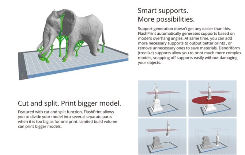 FlashPrint is a powerful slicer that not only lets you print your models with just one click and add supports automatically but also adjust a number of basic and advanced settings to fine-tune your machine. Just like the printer’s design, the UI of the slicer is minimalistic and intuitive to use.