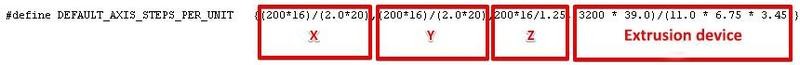 Now let’s move on to the most important part – setting the steps per unit for one or more axes. The extrusion device is also an axis. Here are our settings: