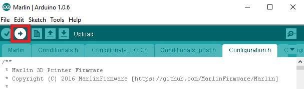 The firmware is then opened by the Arduino IDE editor. We need to open the Configuration.h tab.