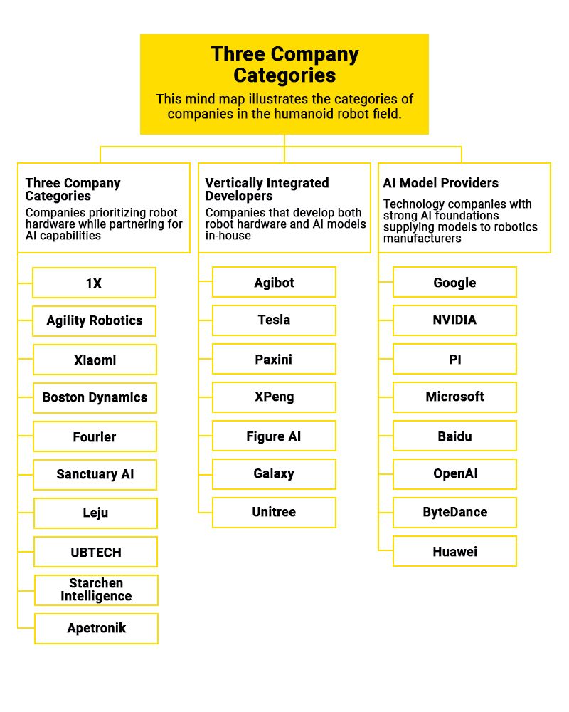 Companies prioritizing robot hardware while partnering for AI capabilities.