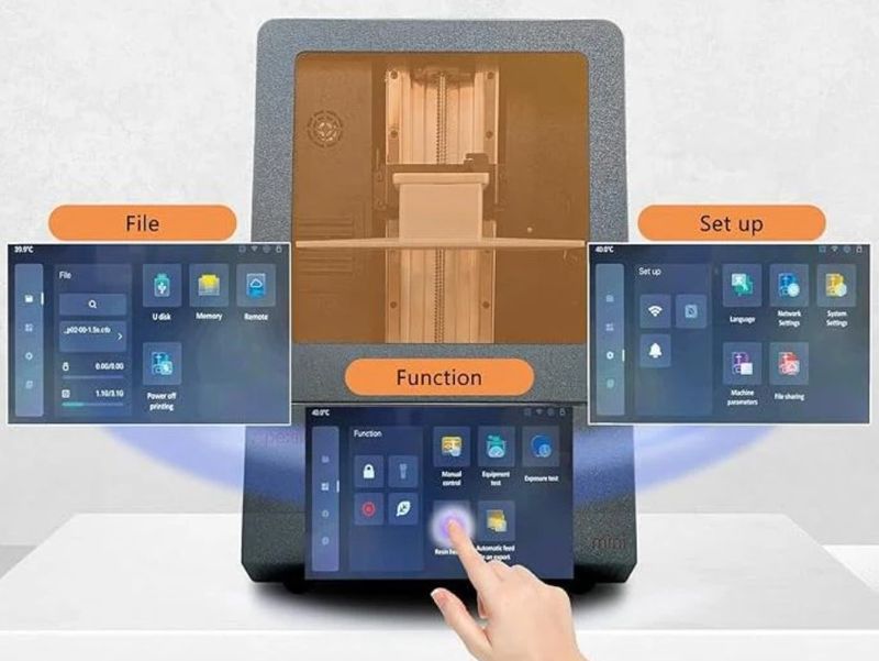 The X1 MINI model integrates 3 key technical systems: automatic resin feeding reducing manual intervention by continuously monitoring resin levels, temperature-controlled resin tank heating maintaining optimal curing temperatures up to 60 °C, and closed-loop motor control providing real-time positional feedback with correction capabilities. The 223.78 x 126.98 x 210 mm printing volume accommodates multiple medium-scale projects simultaneously. With maximum printing speeds up to 200 mm/h and compatibility with major slicing software including Chitubox and Lychee Slicer, the X1 MINI streamlines the entire printing workflow from design to finished product. The integrated air purification system and 7" touchscreen interface demonstrate the printer’s focus on user experience and professional operation.
