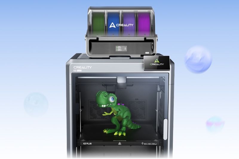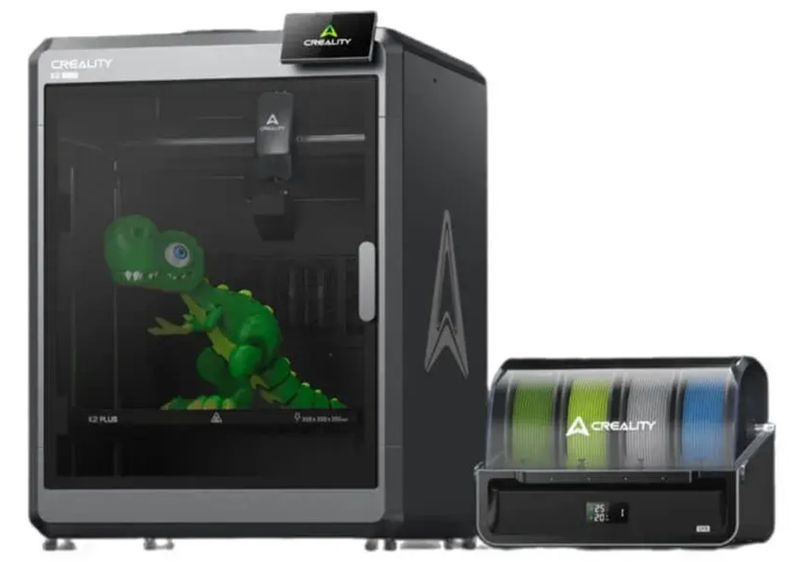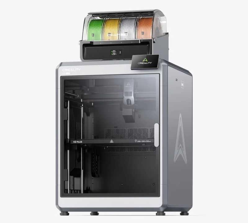 The Creality K2 Plus Combo is a professional desktop FDM 3D printer aimed at high-speed production with increased stability and reliability in mind. Focused on multi-color and multi-material printing, the K2 Plus Combo model comes with the CFS — Creality Filament System that enables printing with four filaments (up to 16 using 4 CFS units) and allows one to effectively manage material during the printing process. To expand the range of supported materials, the device is engineered with an active chamber heater and effective cooling system to ensure excellent print quality.
