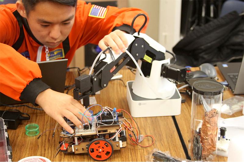 As part of the “Occupy Mars Learning Adventures STEAM++ Program”, some students from the Long Beach Unified School District's CAMS have chosen the DOBOT to produce parts for other robots.