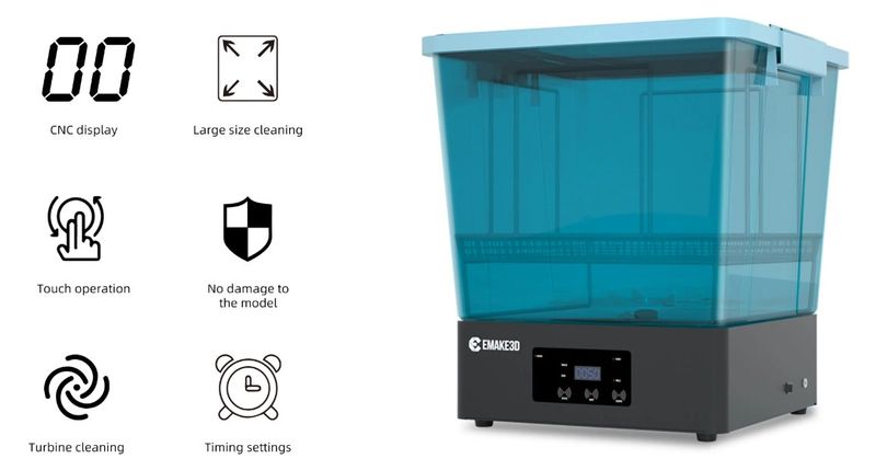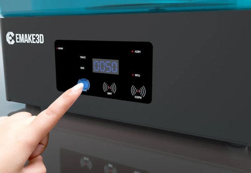 The Emake3D 3D printing model washing machine incorporates programmable timer control from 3–20 minutes with pause and resume functionality for mid-process inspection. The programmable operation eliminates 100% of manual timing errors and provides real-time cycle adjustment for specific model requirements.