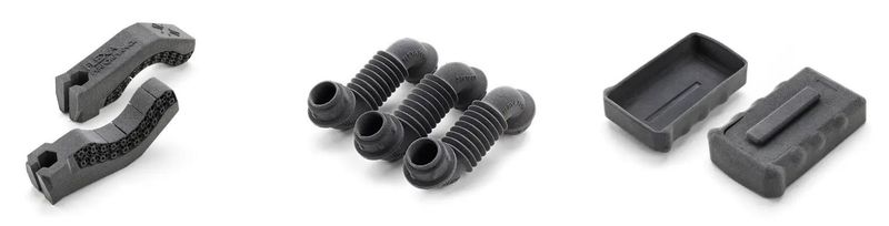 FLEXA Performance serves 4 primary application categories: functional flexible prototypes, shoe components, industrial parts, and vibration control elements. The material’s high elongation at break (>170%) makes it ideal for applications requiring repeated flexing without failure, such as shoe soles and insoles. Its tear resistance and Shore A 88 hardness make it perfectly suited for production tools and grippers in manufacturing environments. FLEXA Performance excels in vibration damping applications due to its elastomeric properties combined with good structural integrity. According to technical documentation, the material is ideal for use in gaskets, flexible joint covers, vibration dampers and others where the strength of the flexible material is significant. These applications directly leverage the material’s chemical resistance and ability to withstand repeated bending cycles, making it a versatile choice for industrial components that require both flexibility and durability.