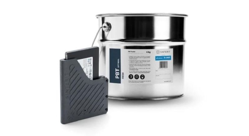 The Sinterit PBT Optimal FRESH powder is sold in 6kg metal containers for safe and convenient transportation.