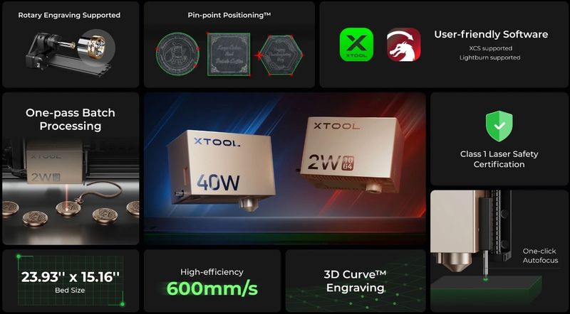 • Software: xTool Creative Space, LightBurn, LightGRBL